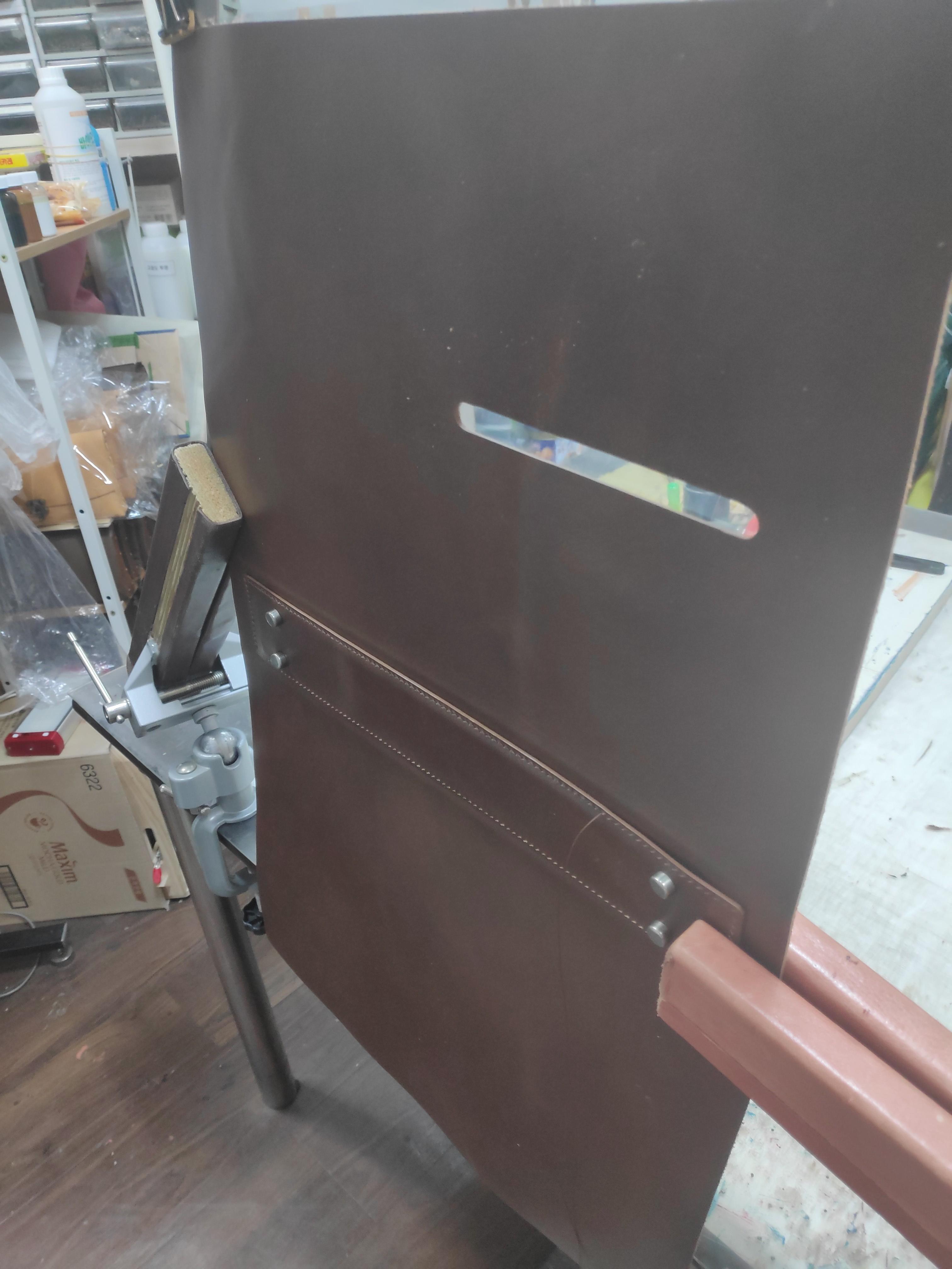 다시 위와 같은 작업을 거친 후 다음으로 바닥면이 아래로 처지지 않도록 가죽을 추가로 덧대는 작업을 했습니다. 모든 작업의 안쪽을 촬영하는 것에는 작업의 노하우가 깃들어있기 때문에 사진으로 올릴 수 없다는 게 아쉽네요 ㅠㅠ