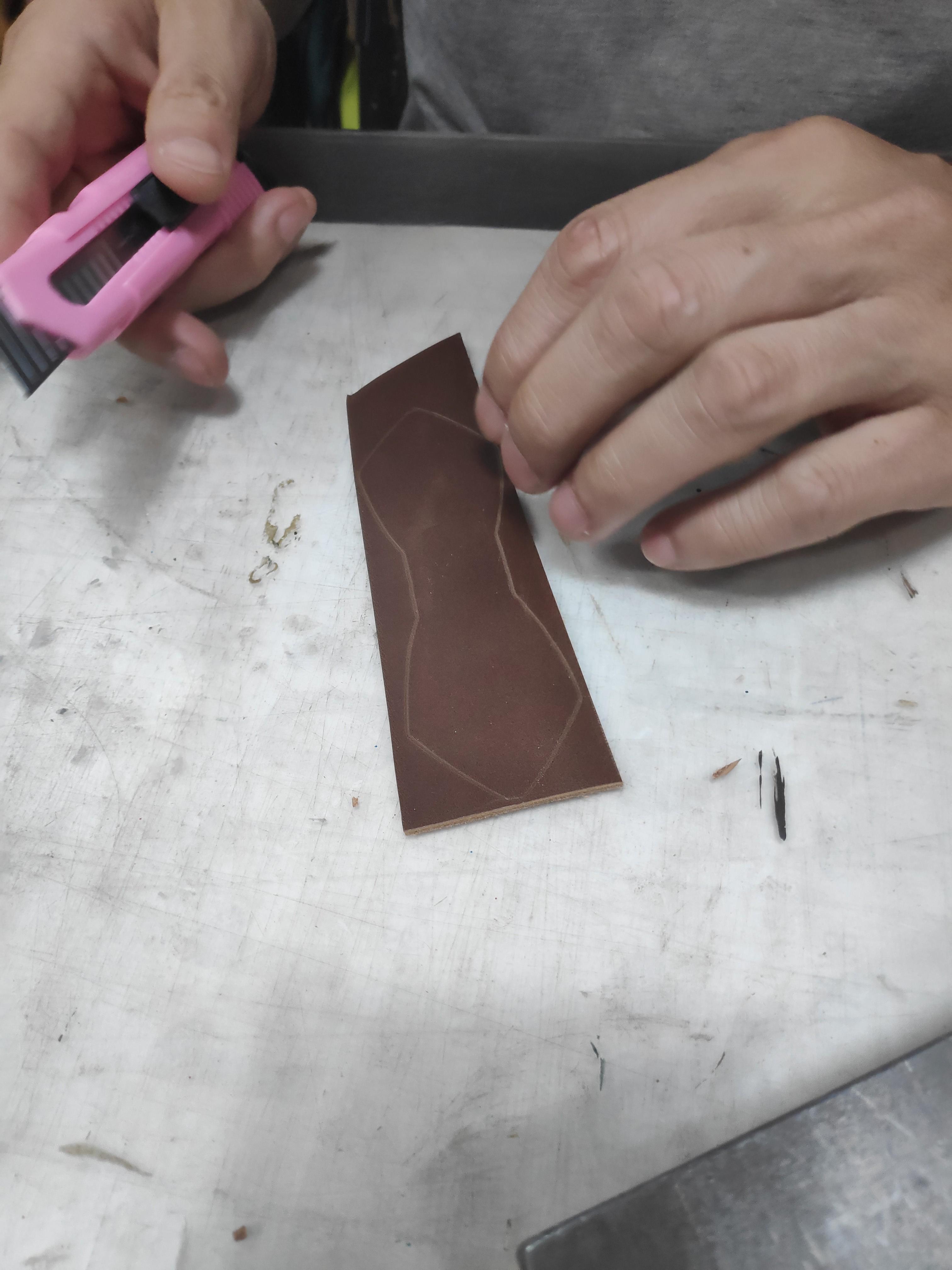 선생님께서도 살짝 당황하신 것 같았습니다. 하지만 이내 생각을 좀 하신 후에 다시 가죽을 자르셨습니다. 제가 말한 수치가 비록 몇 cm 차이 나지는 않지만 1cm씩 자르면서 고민한 사이즈라서 꽤나 중요했었습니다.