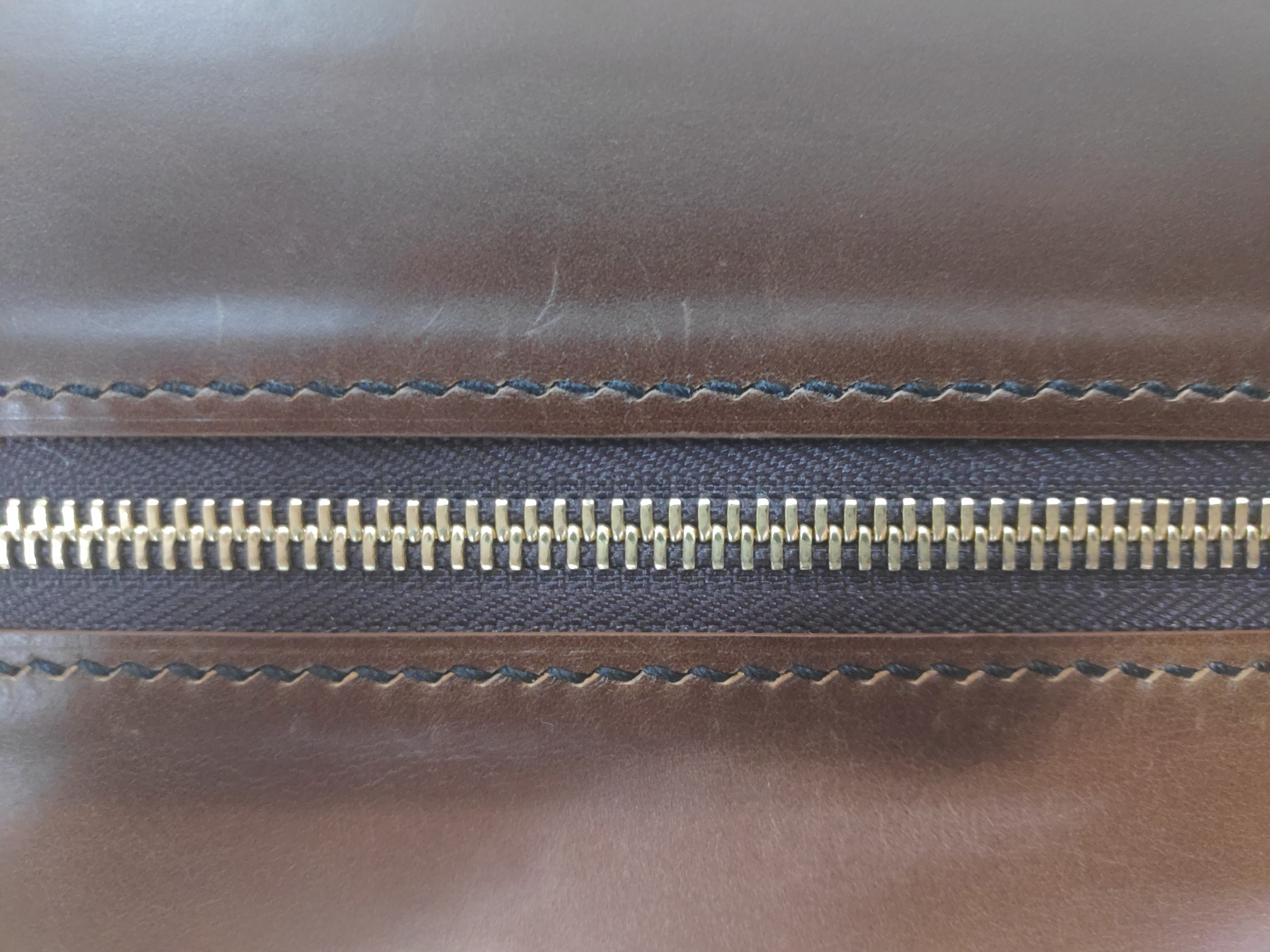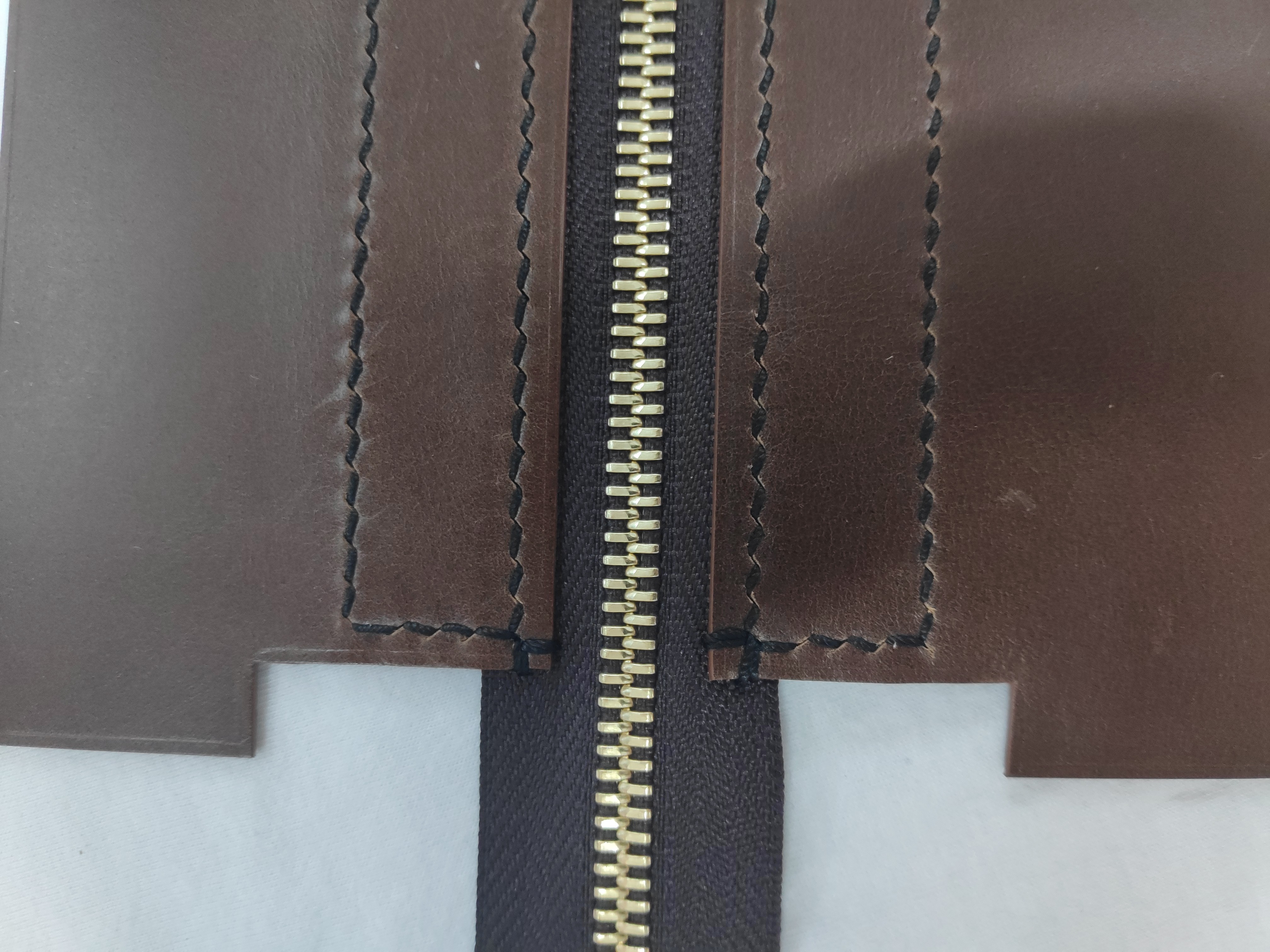 위와 같이 지퍼와 날개 부분을 전부 바느질했습니다. 여기서 생각한 게 실의 색깔입니다. 이제까지 밤색으로 무난하게 하려고 했었는데 너는 특별한 가방을 원해서 검은색 실을 사용하기로 했습니다.