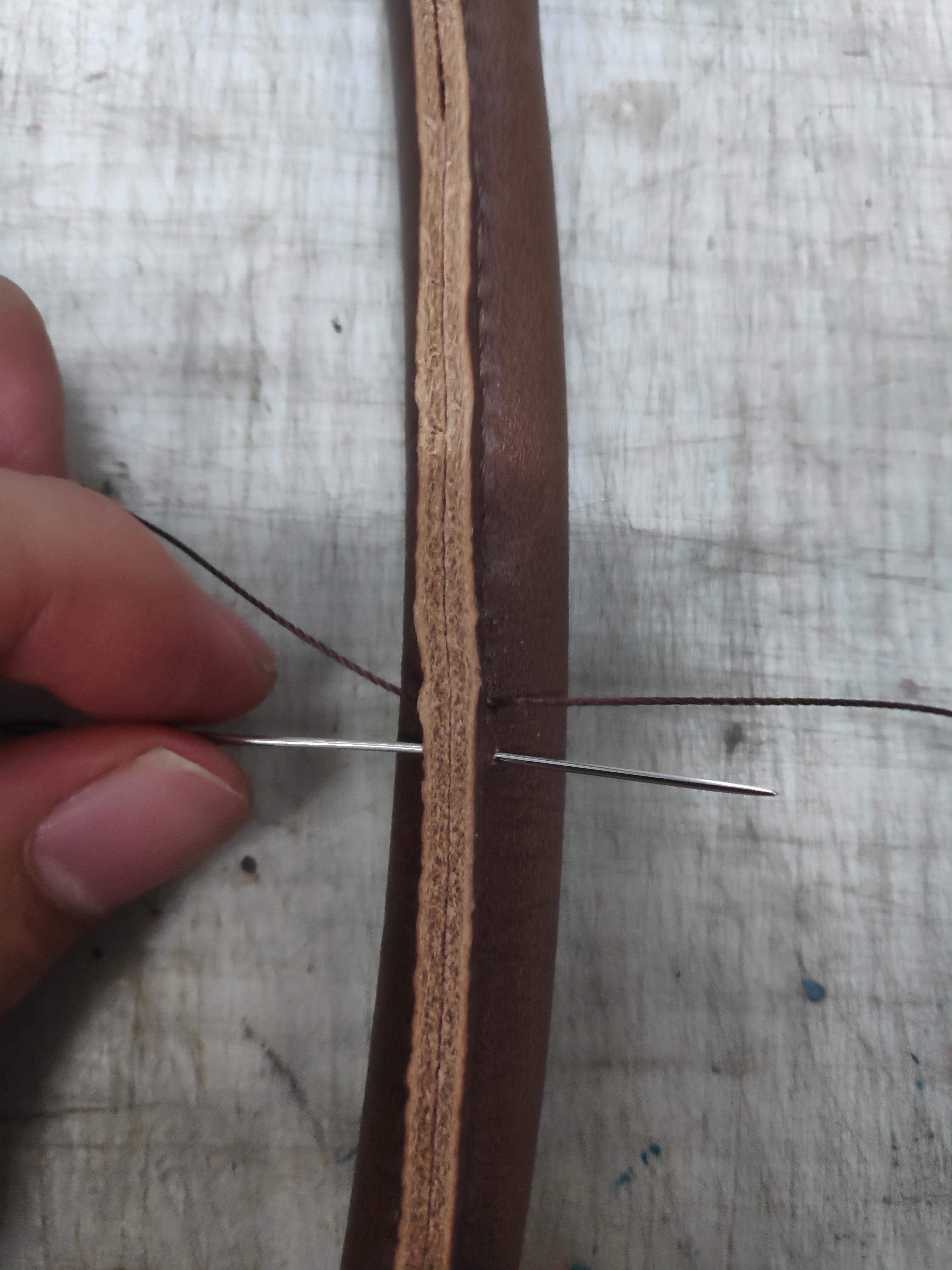 제가 가방을 만들면서 한 바느질 중 손이 제일 아팠던 바느질입니다. 손 바느질에 사용하는 실은 일반 실과 달리 두께가 눈에 띄게 두껍습니다.