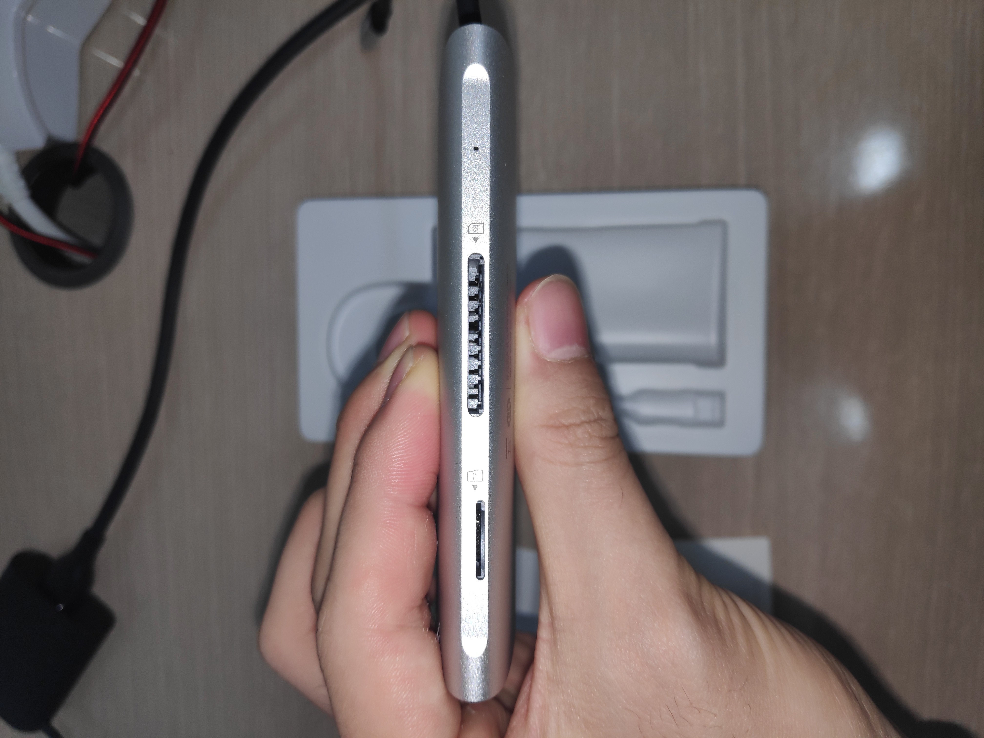 일단 사진에서도 보신 것처럼 (이미 유튜브의 리뷰들을 확인하며 알고는 있었지만) 포장이 매우 잘 되어 와서 기분이 좋았습니다. 그리고 바로 꽂아서 usb-A 타입 포트가 전부 작동하는지 확인해봤는데 잘 작동했습니다.