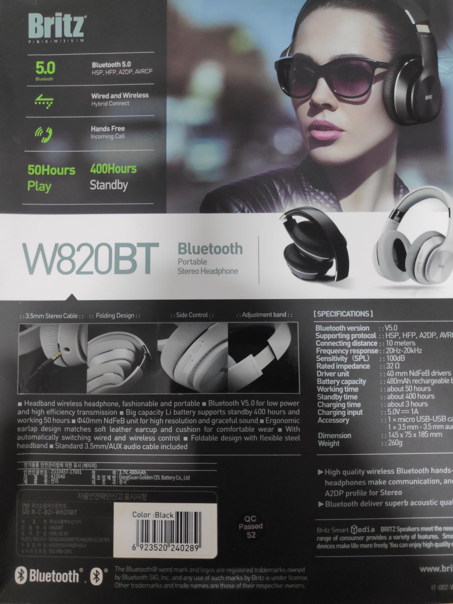 'Britz 브리츠 무선 헤드셋 W820BT'