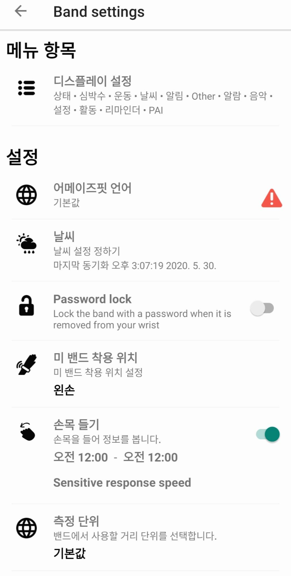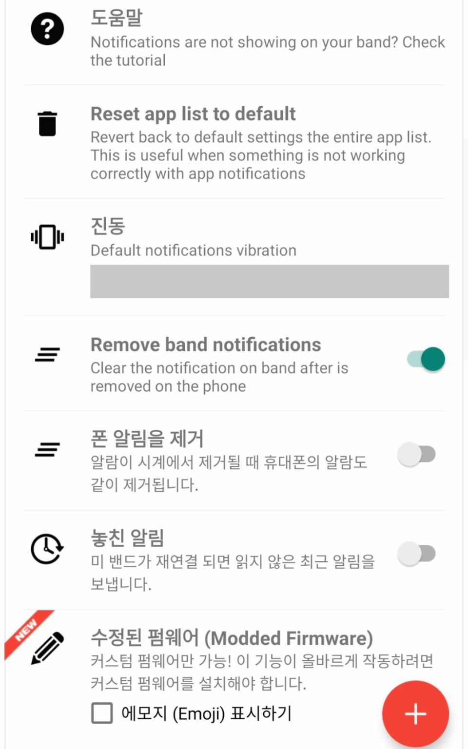 Remove band notification은 스마트폰에서 알람을 확인했을 때 스마트 워치에서도 알람을 지우는 기능입니다. 설정을 해제하면 스마트폰에서 확인을 해도 스마트 워치에서 이전 알람들을 확인할 수 있겠네요.