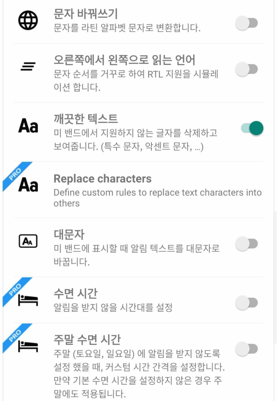 3. 깨끗한 텍스트 : 특수문자나 스마트 워치에서 지원하지 않는 문자는 제거하는 기능